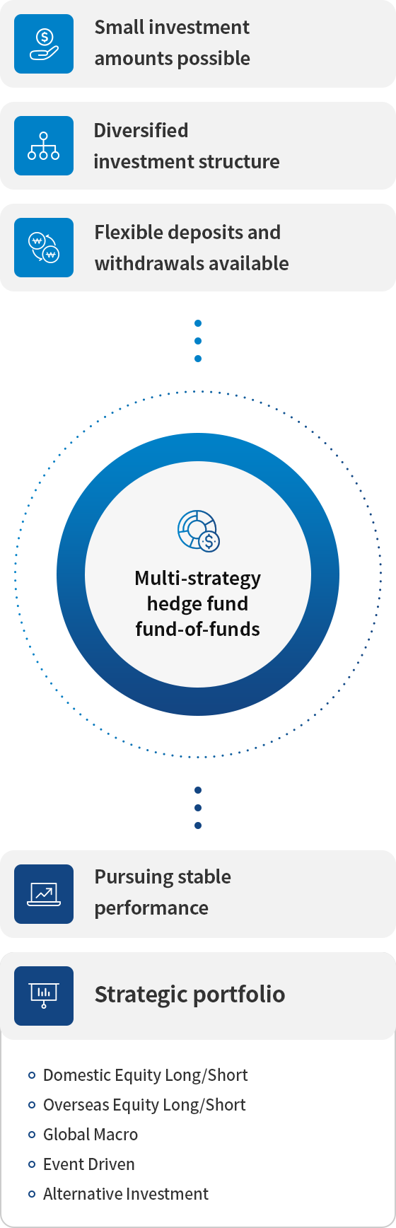The primary investment strategies of the underlying fund, TIMEFOLIO Hedge Fund, include Domestic Equity Long/Short, Alternative Investments, Overseas Equity Long/Short, Global Macro, and Event-Driven strategies.