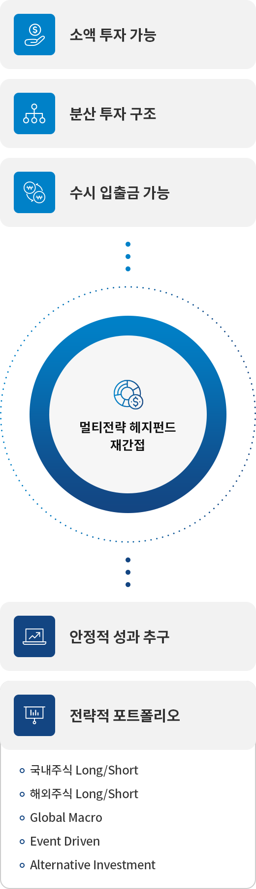 소액의 투자금으로도 안정적인 성과를 추구하는 타임폴리오의 멀티전략 헤지펀드에 분산 투자가 가능하며,