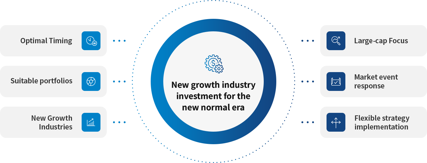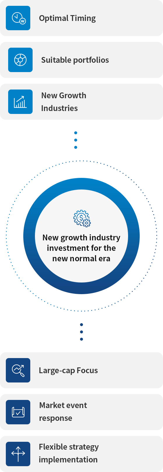 This fund invests in new growth industries in the New Normal era, based on the most appropriate portfolio at the optimal timing. It identifies equities aligned with emerging industry trends and concentrates primarily on large-cap equities in new growth sectors. The fund also employs investment strategies that actively respond to various market events, aiming to mitigate the impact of market conditions.