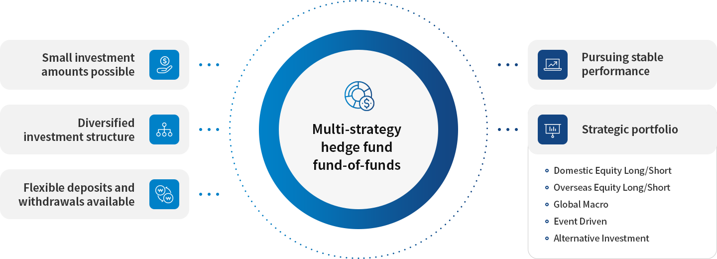 The primary investment strategies of the underlying fund, TIMEFOLIO Hedge Fund, include Domestic Equity Long/Short, Alternative Investments, Overseas Equity Long/Short, Global Macro, and Event-Driven strategies.